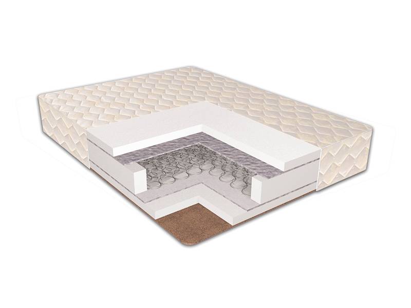 Міцний пружинний блок Боннель рівномірно розподіляє вагу Вашого тіла по всій поверхні матраца, забезпечуючи оптимальну підтримку. Латексоване кокосове волокно забезпечує натуральну жорсткість та хорошу вентиляцію, а єврокаркас надає матрацу додаткову міцність та стабільність.