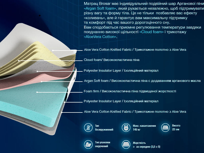 - Cloud Foam – високоеластична піна, яка адаптується до контурів Вашого тіла, забезпечуючи м’якість та комфорт.