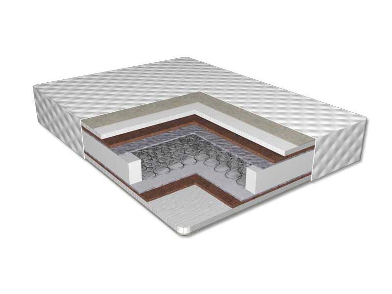 Матрас Мальта – пружинный матрас с ортопедическим эффектом с кокосовой койрой и латексом – средняя жесткость, присутствует эффект зима-лето (шерсть + лён).