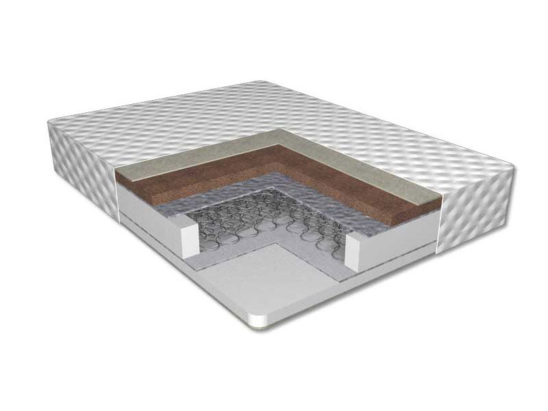 Матрац Мілан – пружинний матрац з ортопедичним ефектом з кокосовою койрою та латексом, з двосторонньою жорсткістю, ефект зима-літо присутній (вовна + льон).
